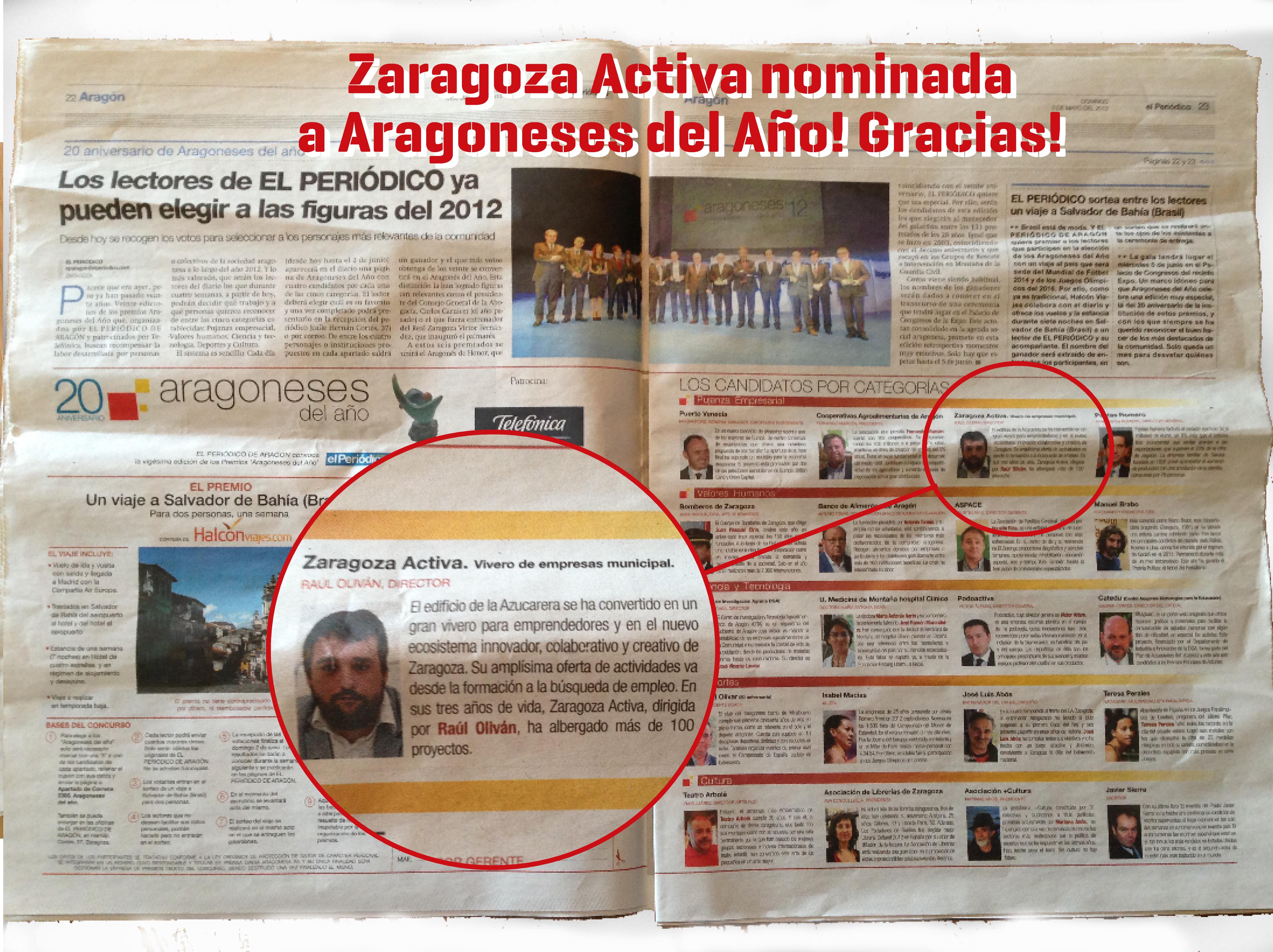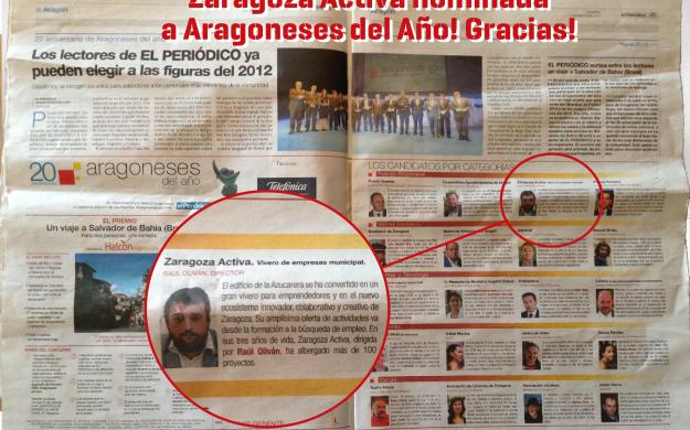 «Zaragoza Activa nominada a los Premios Aragoneses del Año» !Mi madre! (Feliz día por cierto) No me lo podía creer… Pero sí, es real. El Periódico de Aragón nos ha nominado en la categoría de pujanza empresarial y para que os voy a mentir me he puesto como loco de contento.
