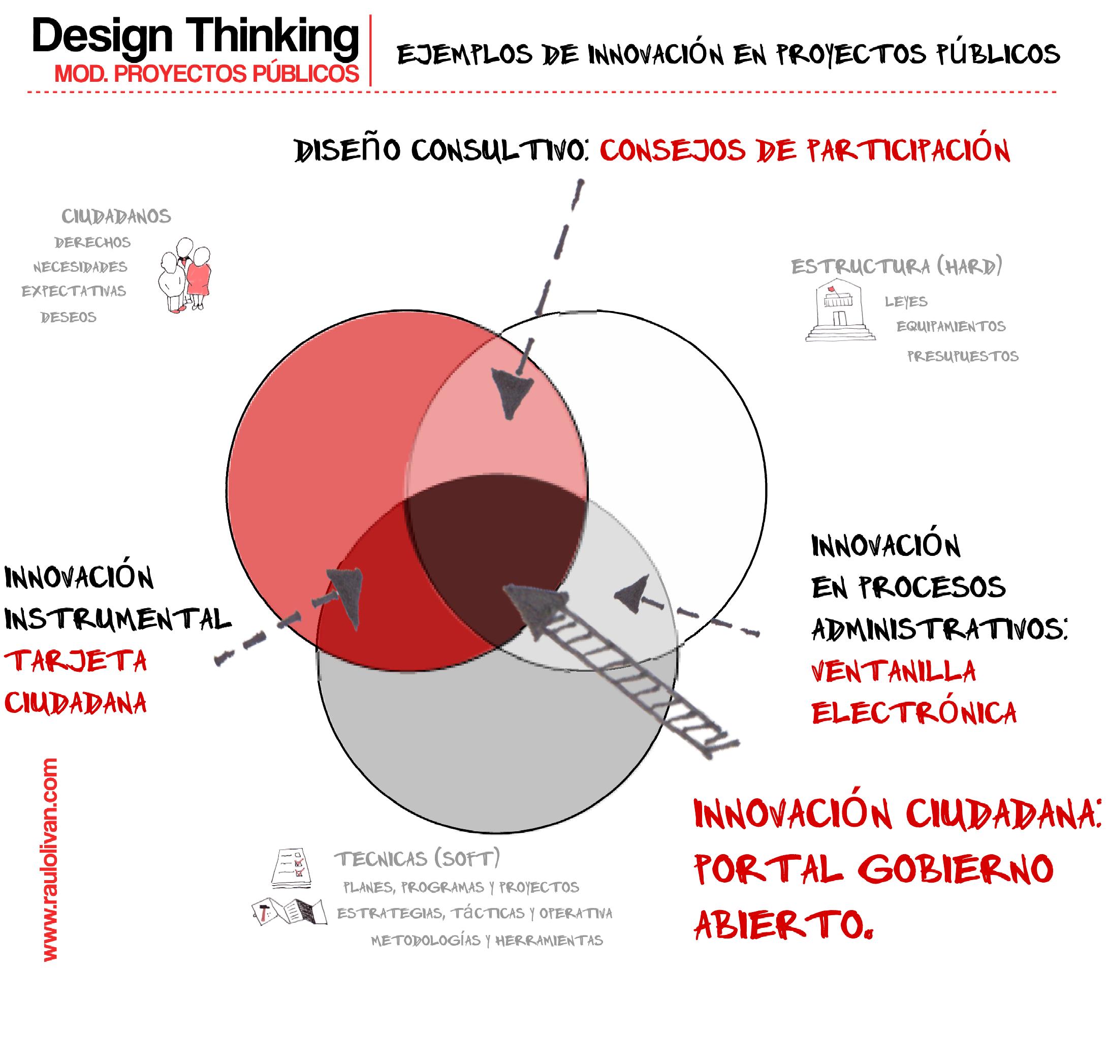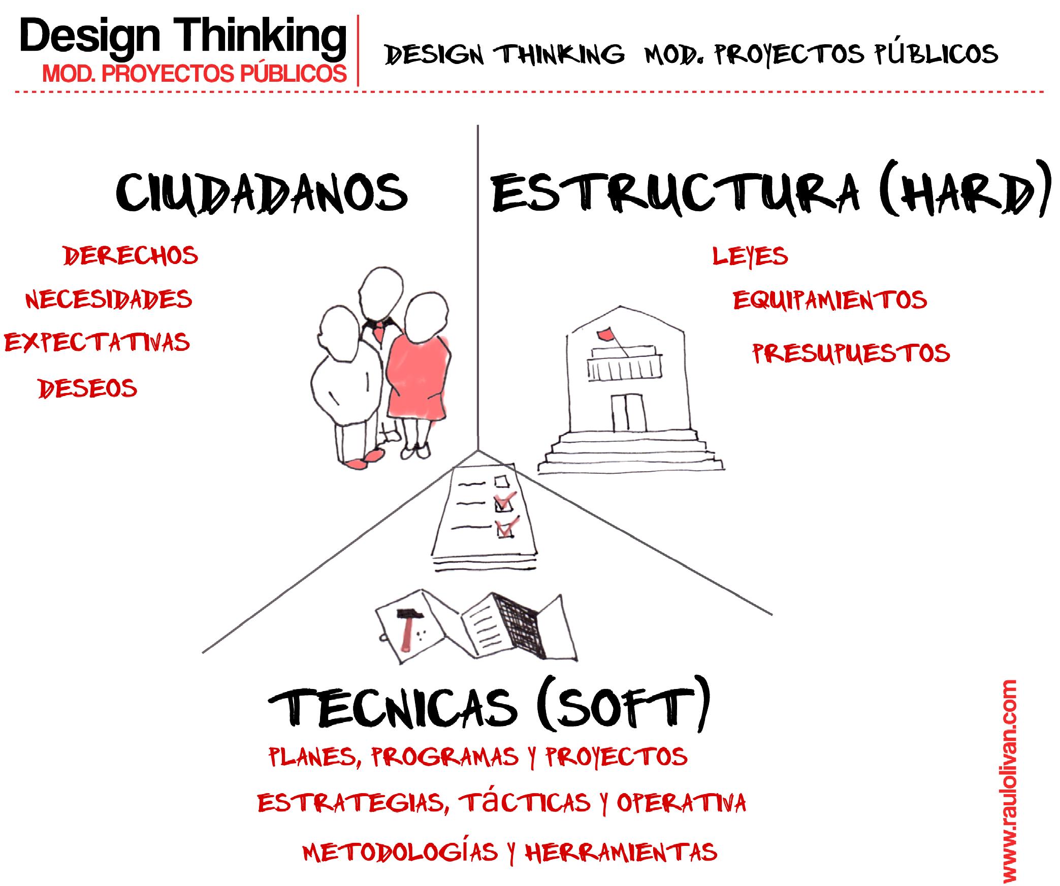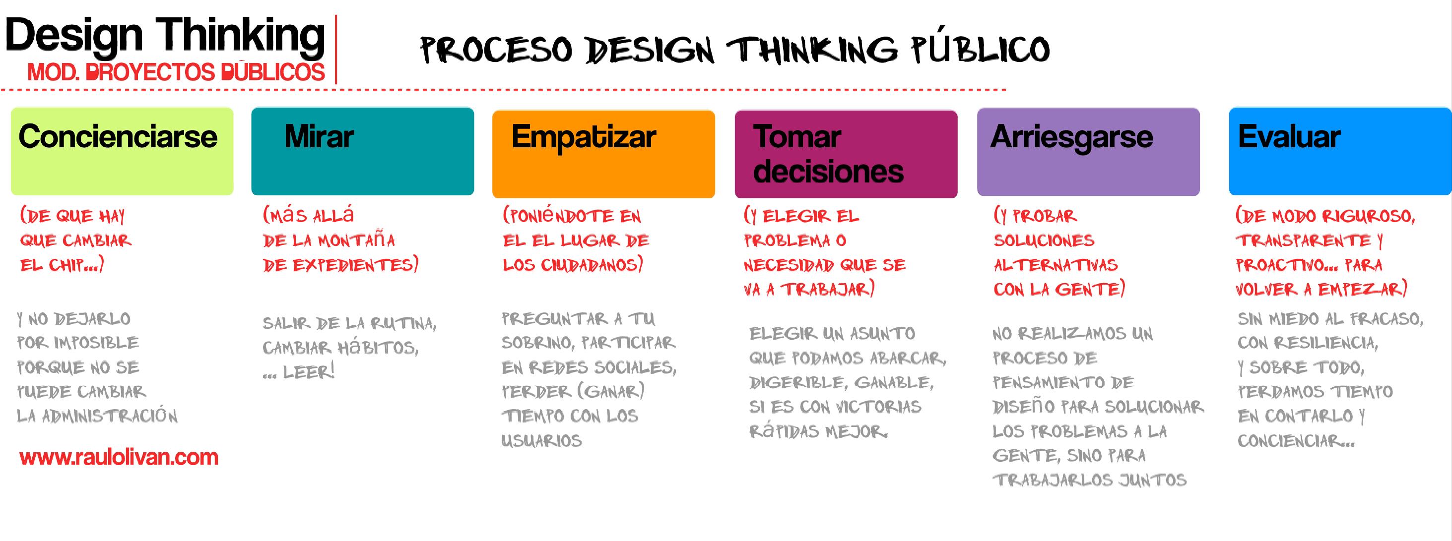 A continuación os presento algunas ideas visuales en torno al Design Thinking o Pensamiento de Diseño aplicado a los proyectos públicos. Son algunas notas mentales que he ido recogiendo mientras preparaba un curso de Innovación Social del Centro Municipal de Formación, que he llevado a gráficos para compartirlas con ustedes. ¿Es interesante el pensamiento de diseño en proyectos públicos?, ¿se puede aplicar? ¿es diferente el design thinking en proyectos públicos?… Yo creo que sí, y pienso también que es útil adaptar alguno de los enfoques, algunas de sus claves y algunos de sus conceptos al lenguaje y a la lógica de los proyectos públicos.